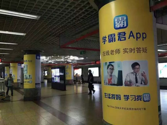学霸君也如之前所计划,上线了老师答疑版块,学生拍照得到答案后,若仍然有疑问,可以点击呼叫老师进行详细的白板+语音回答。地面广告结合产品新功能,“生活找妈,学习找霸”的新广告词算是朗朗上口,估计学霸君的市场部同学为了这个广告语掉了不少头发。
