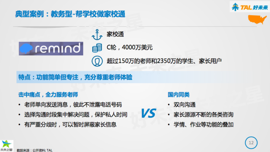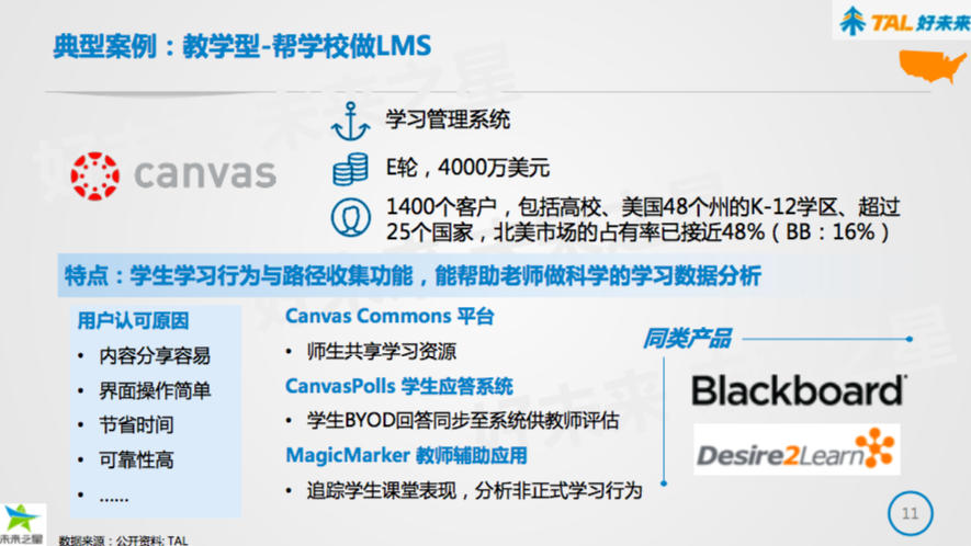 与中国不同的是,美国的K12教育公司的业务大多是公立校业务相关,一些明星公司如提供教学内容的HMH、提供LMS的canvas、提供家校通的Remind、提供管理课堂软件的ClassDojo都是如此。