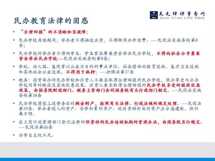 我大概给大家归纳一下民办教育法律到底现在存在哪些困惑,或者说法律上有哪些障碍成为教育机构进入资本市场的障碍。
