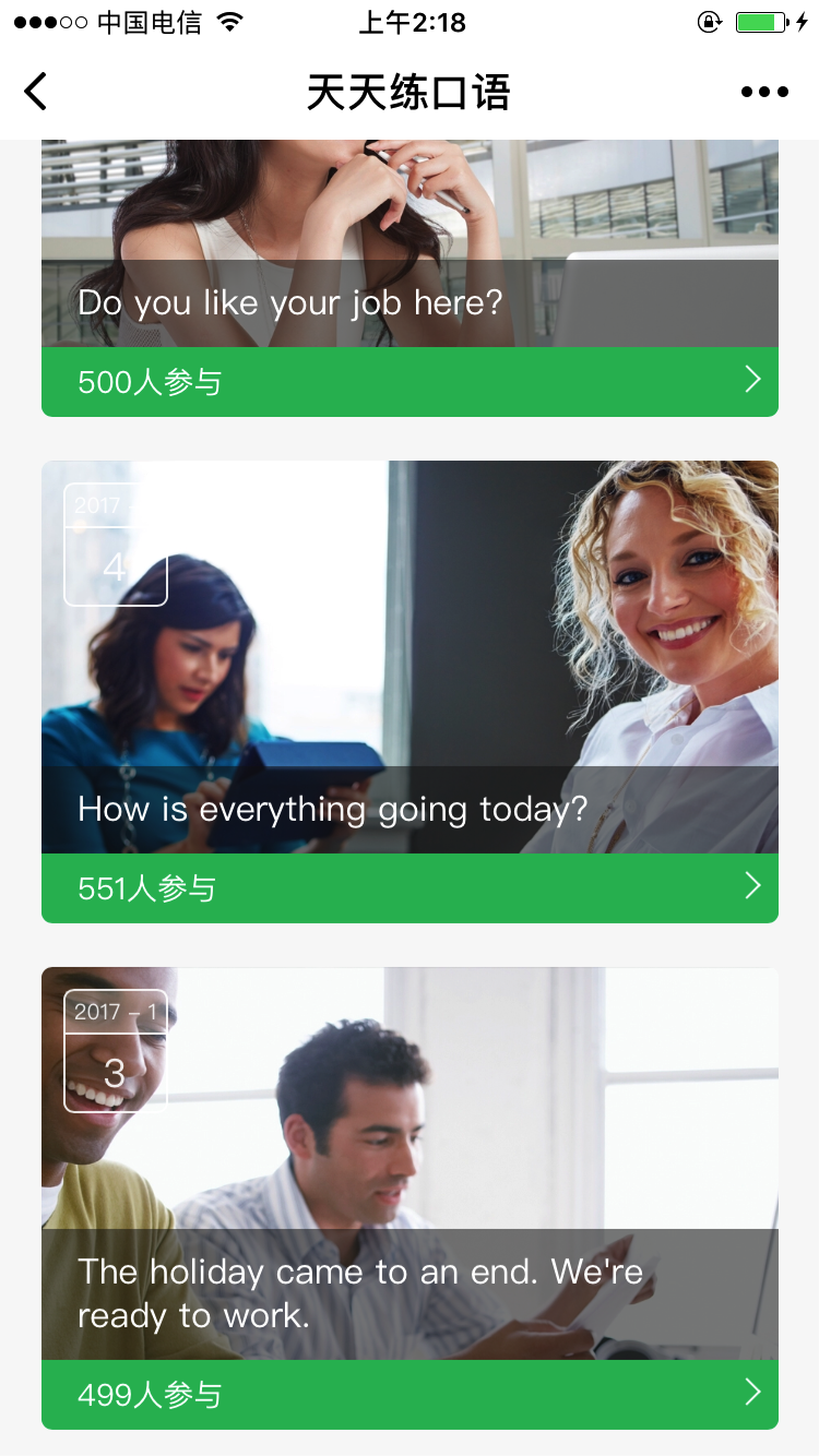 沪江方面称,天天练口语在尚未推广的情况下已经有10W+的访问量。小程序适合做教育服务的入口,为更专业更深的教育服务作过渡引导和转化。