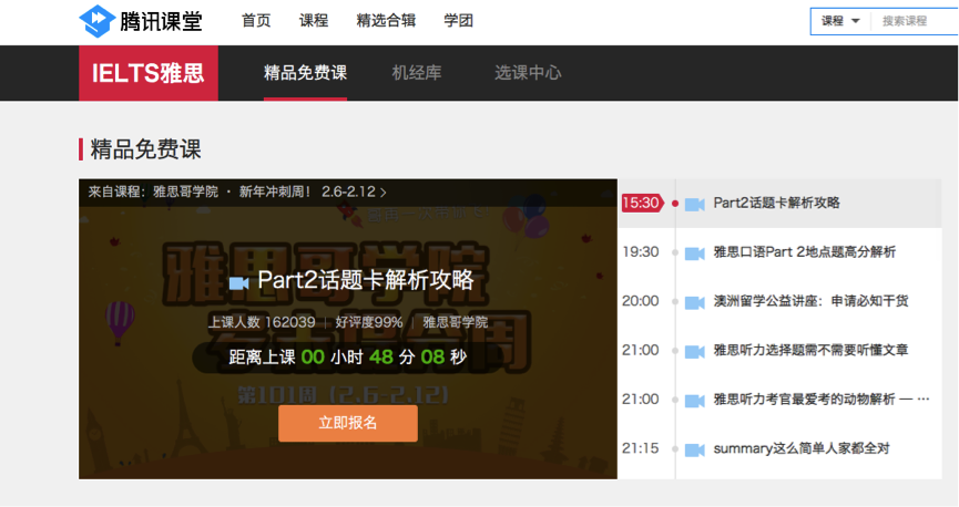 图为腾讯课堂雅思学院页面