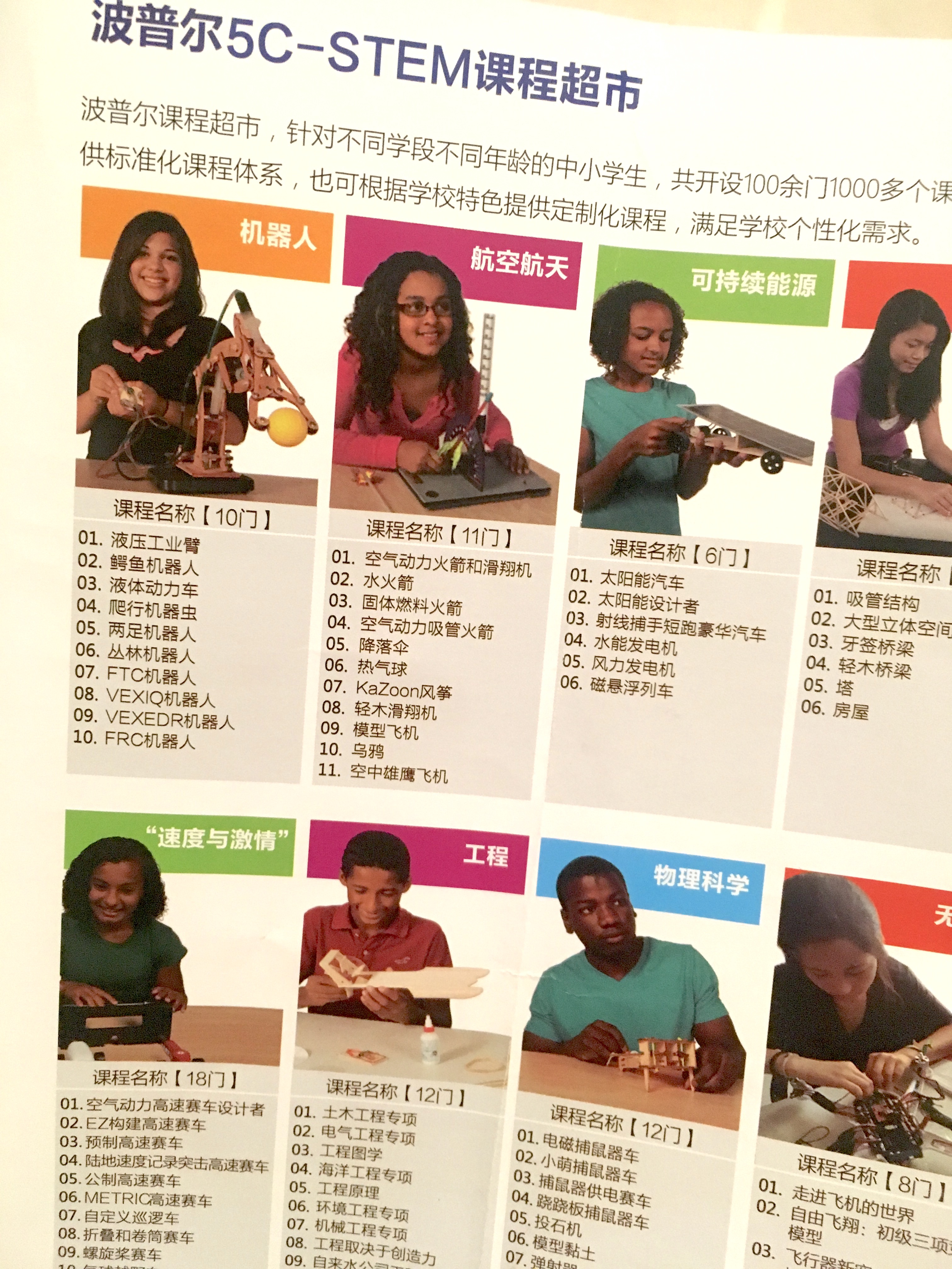 波普尔公司推出了课程超市,开发了各类STEM课程。