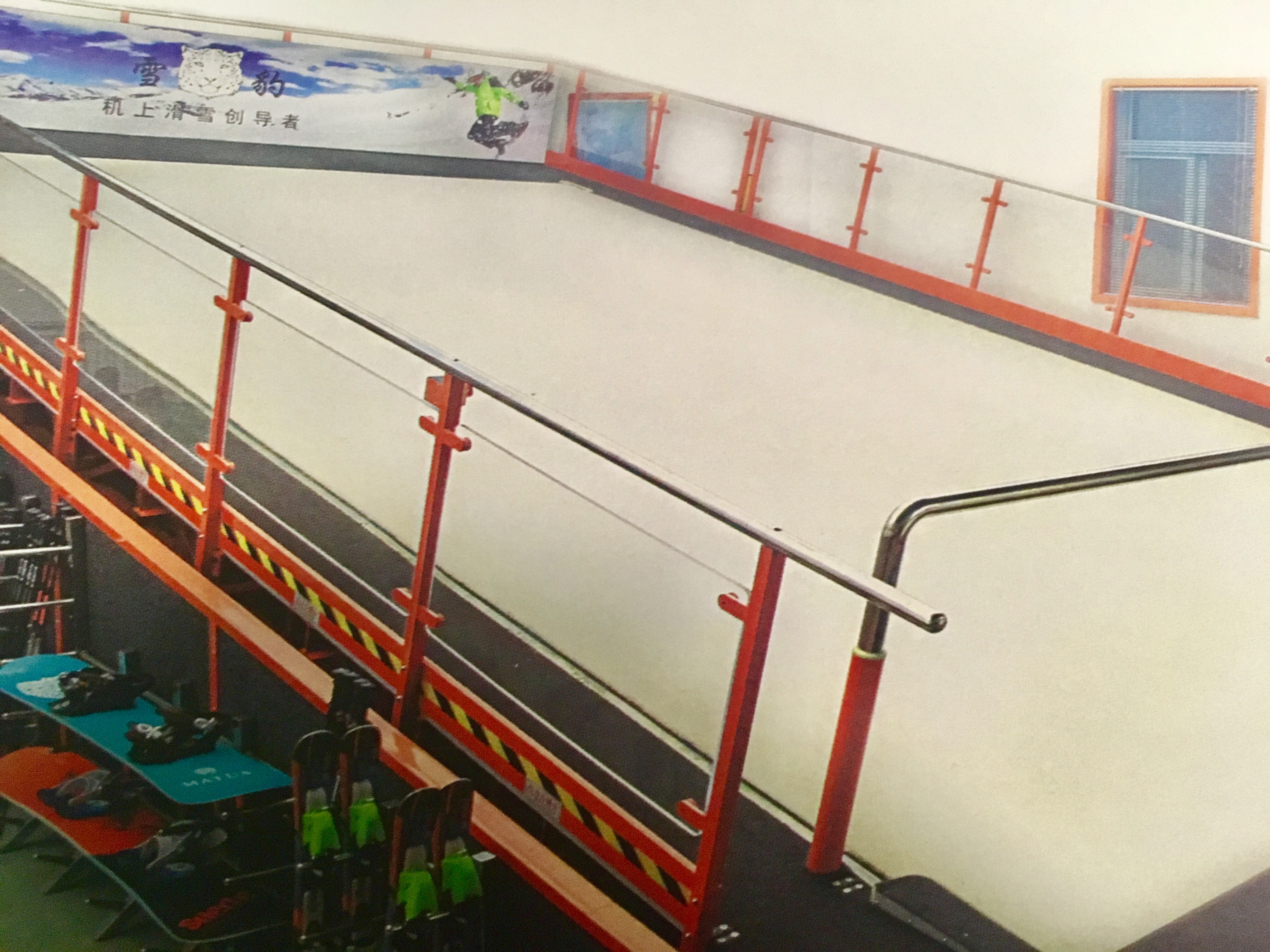 其实这是一款智能设备,在一定大的室内空间中就可以实现滑雪教学。雪毯像跑步机的传送带一样可以滚动起来,坡度、速度都可以根据教学情况进行调节。