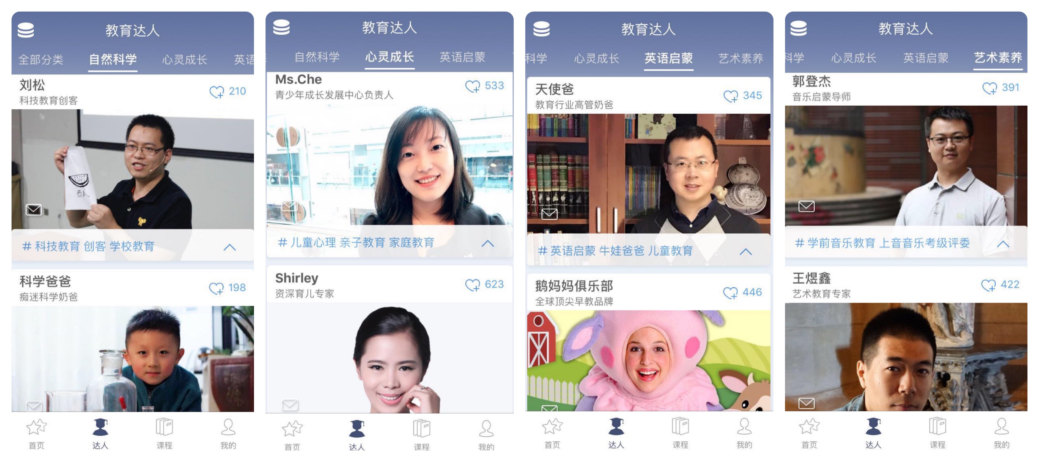 课程品类方面,分类会更加科学化。“我们想在覆盖更多领域,”考拉优教目前有自然科学、心灵成长、英语启蒙、艺术素养四类课程,但钱晋文想,随着达人输出的课程逐渐增多,内容点会更加分散,难以用传统学科大项进行分类。