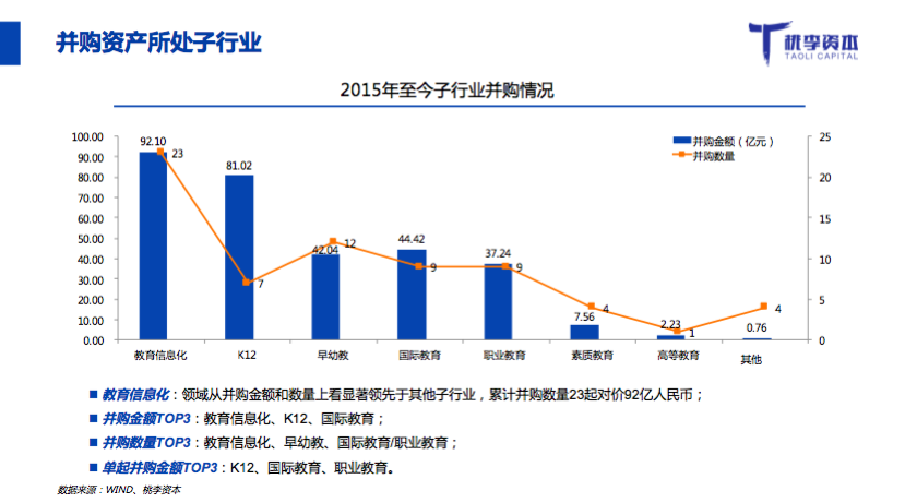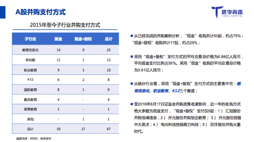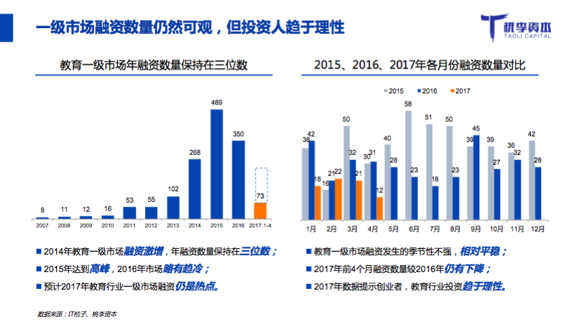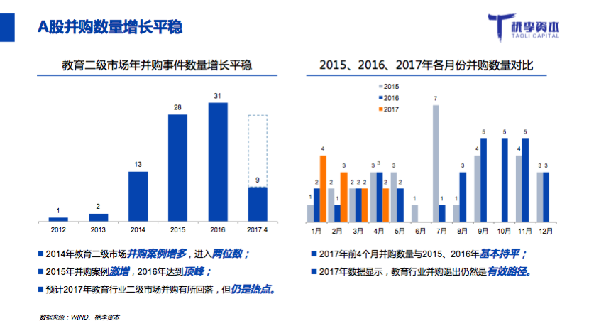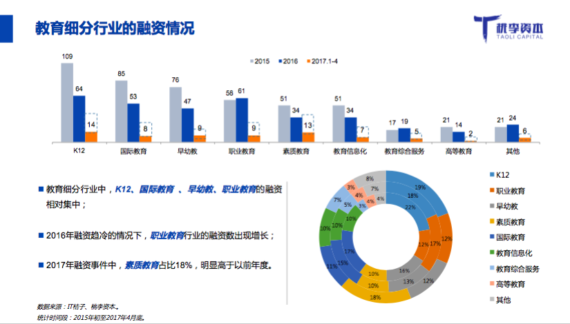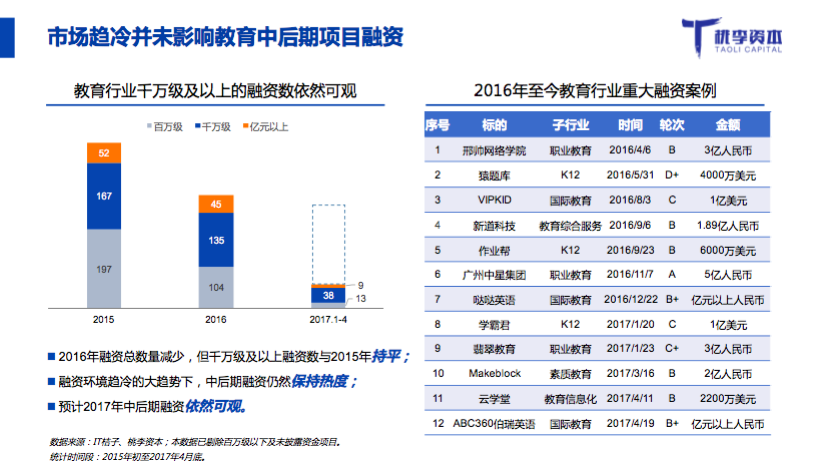 桃李资本合伙人郭西凡在活动中发布了《2017年教育行业融资并购报告》: