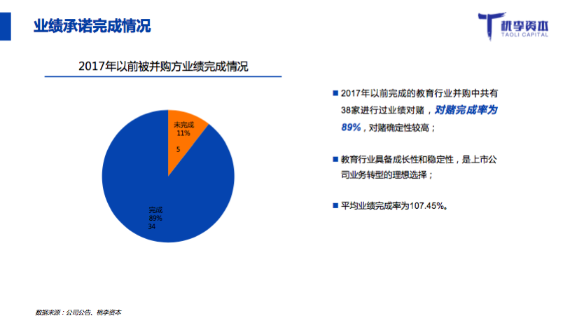 从过往几年的业绩完成情况看,业绩承诺完成率是90%左右,这可能也从另外一个角度解释为什么上市公司对教育行业这么有兴趣。