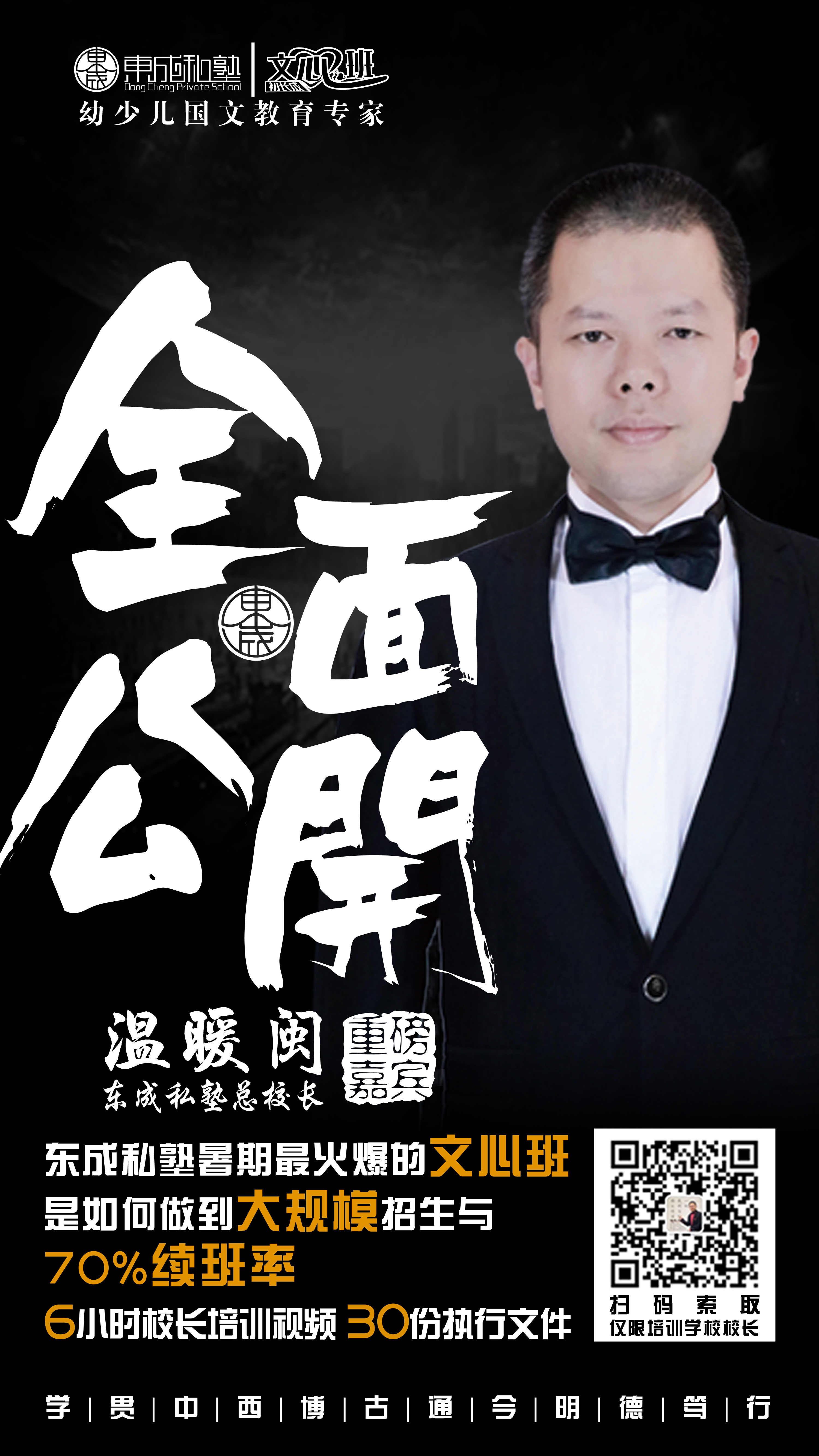 早在2016年暑期,东成私塾就在四个直营校区尝试推行文心班,共招收新二年级学生3000余人。首次尝试不仅续报率达到了60%,同时还总结出了一套完整的服务体系。于是今年直接扩建5个直营校区,并进行大规模招生,依靠“1元10课”的优惠政策,以及独特的地推宣传,仅用了一个月时间,招生人数达到6000多人。同时依靠专业的教师培训体系,在大规模招聘新教师进行短期集中培训20天后,最终续报率仍达到65%。