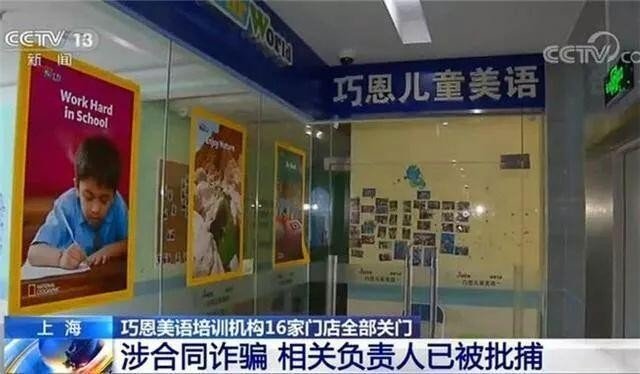 据了解,早在2019年5月15日上午,上海周浦万达百货三楼的“巧恩儿童美语”培训处,大量家长围在现场。家长们报警称,该培训机构大门关闭,工作人员均已失联,这家在上海浦东、闸北、长宁等多区域拥有16家门店的英语培训机构已经“人去楼空”。浦东分局经初步调查,于2019年5月24日立案侦查。