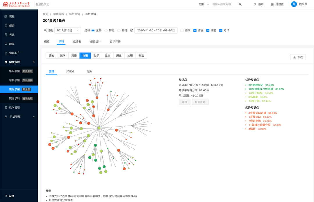 辅立码课聚焦于校内高中学段,通过平板采集学生全场景习题数据,把教师从重复低效的环节中解放出来。教师由讲师角色升华为靶向教学的教练,为学生开出个性化学习的“药方”,让学生的备考转变为精准模式。