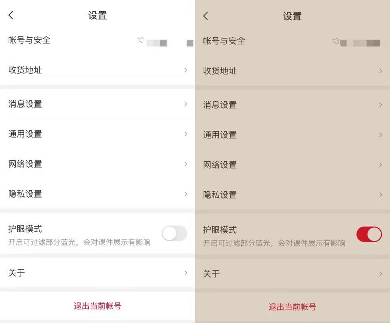 (护眼模式展示,各在线教育APP大同小异)