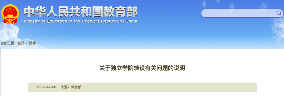 多知网6月8日消息,教育部发布《关于独立学院转设有关问题的说明》。其中指出,2020年5月,教育部印发《关于加快推进独立学院转设工作的实施方案》(以下简称《实验方案》),提出了“转为民办、转为公办、终止办学”的转设路径;并针对“校中校”独立学院(没有社会合作方,仅由高校举办),提出“可探索统筹省内高职高专教育资源合并转设”。