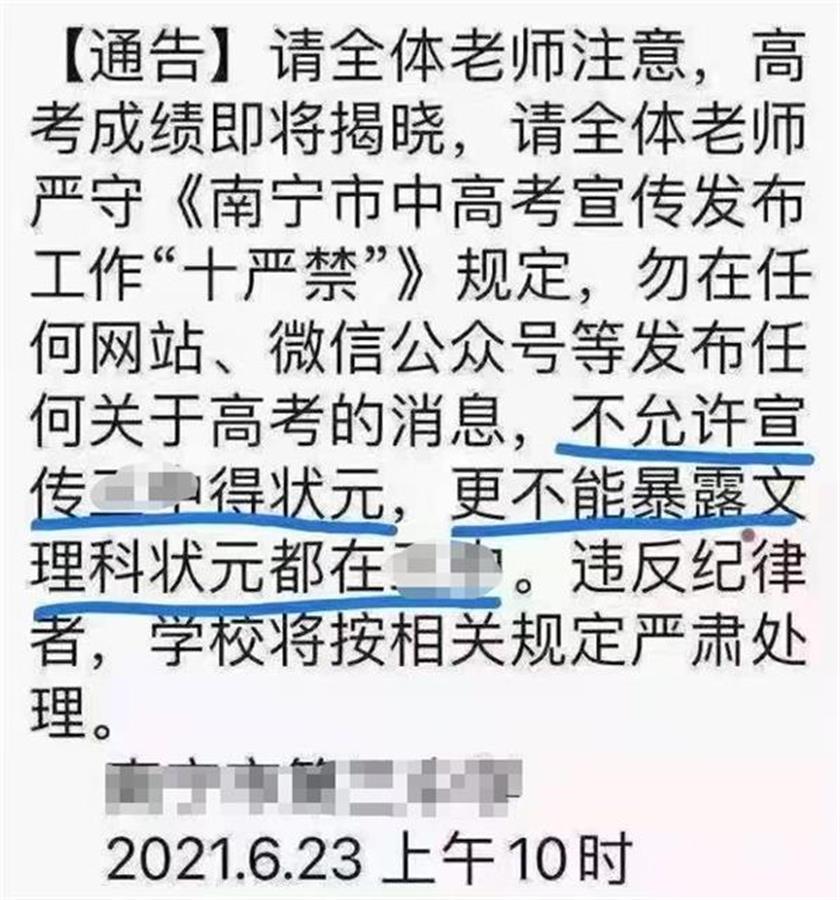 南宁市某中学发给中学老师的消息,可以说是“反向炒作”。