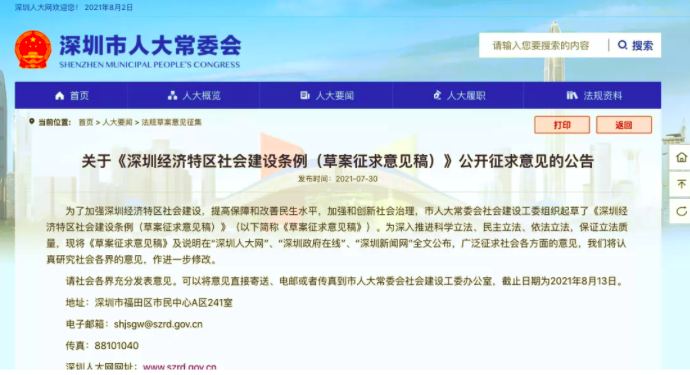 近日,深圳市人大常委会社会建设工委组织起草了《深圳经济特区社会建设条例(草案征求意见稿)》(以下简称为《草案》),共五章七十三条细则,正公开征求意见。