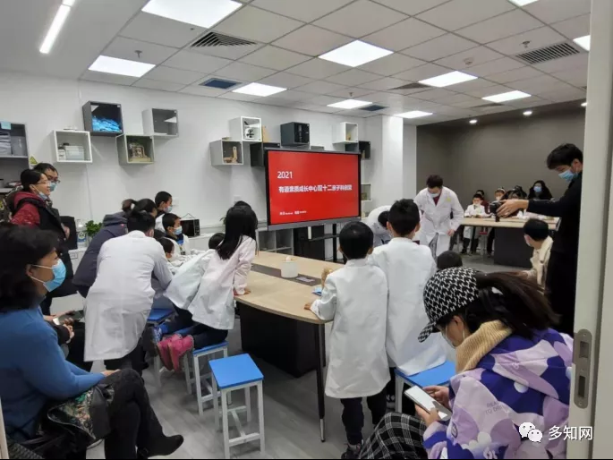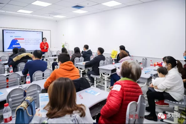 在实验小教室之外,另一间教室正在进行着“家长会”,以解答更多来自家长的疑问。