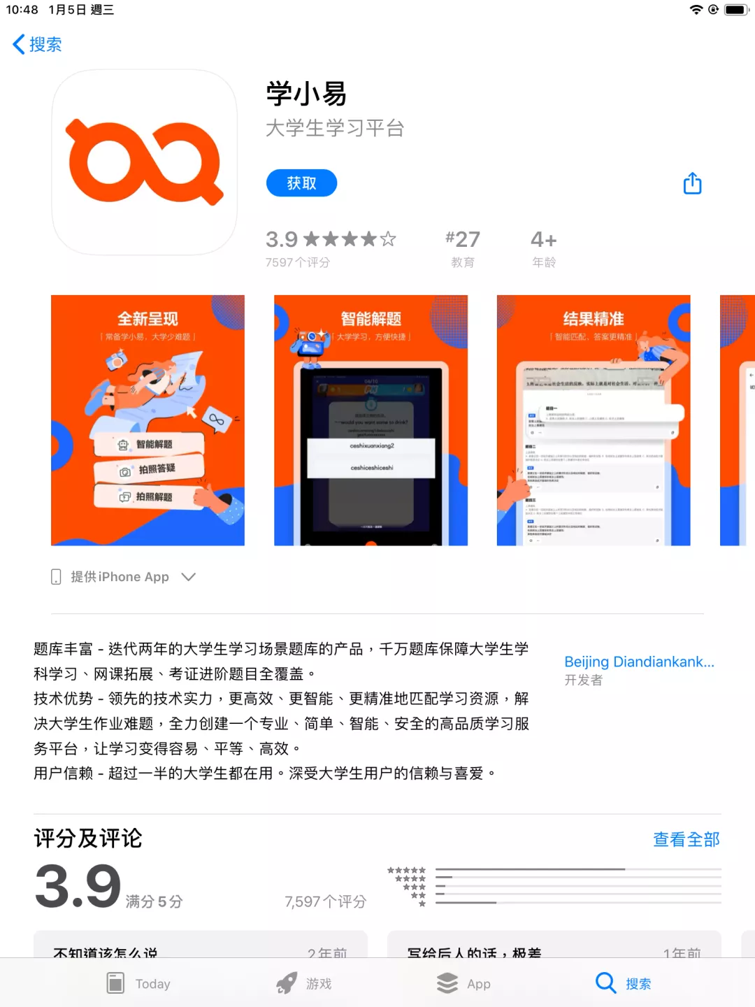 企查查显示,后者旗下主要运营学小易App,是一款面向大学生的学习服务平台,可以搜索各学科教材答案,包括课后数学题答案,也可以搜索网课答案。还可以搜索试卷、真题,进行测试训练。学小易不仅有大学常用学科种类和内容,还有资格证书类试题、软件技术类试题等。
