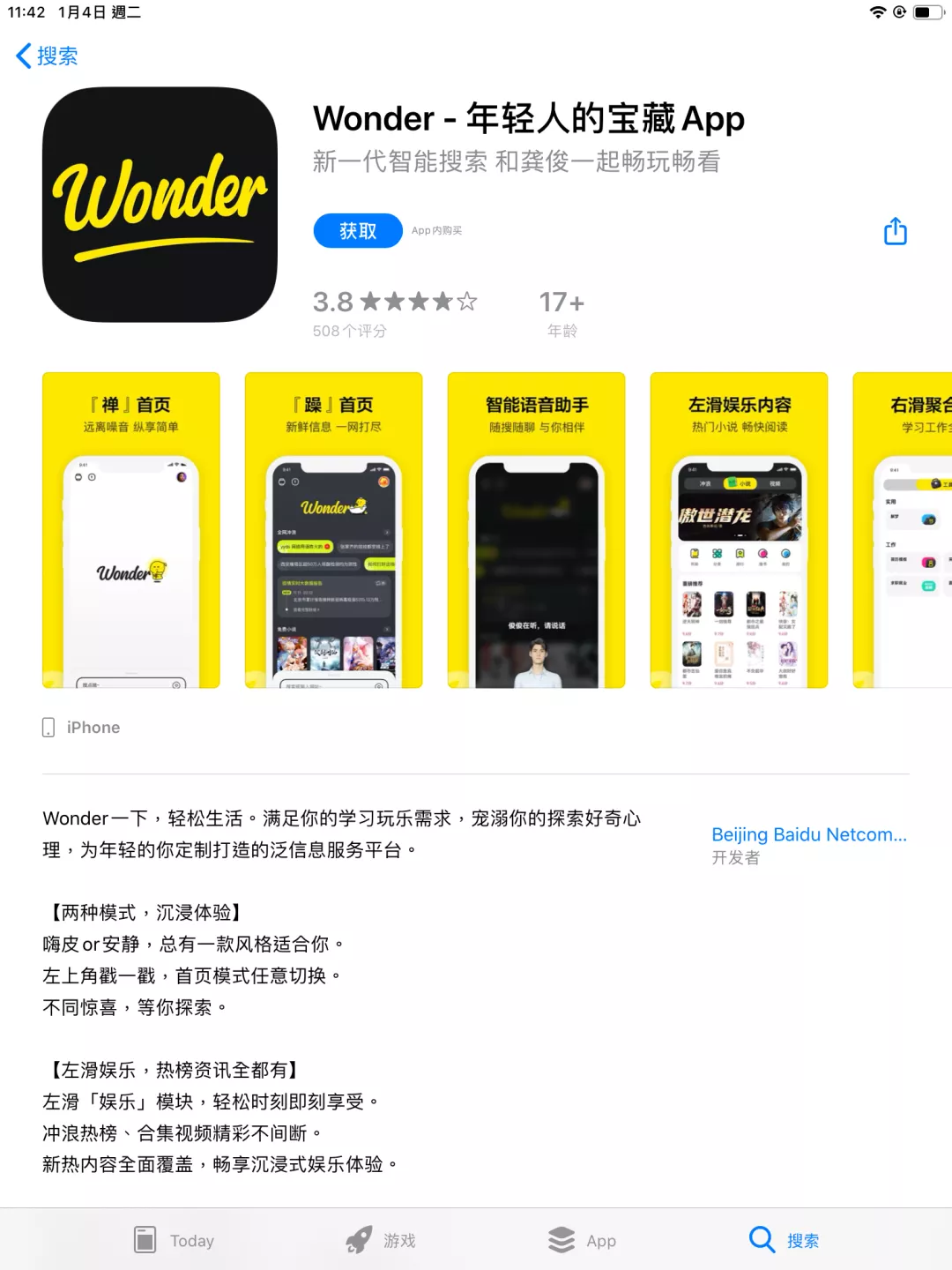 2021年12月,百度发布了一款名为“Wonder”的App,产品定位年轻群体泛信息服务平台。
