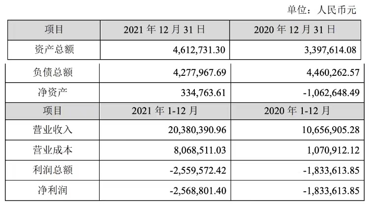 根据世纪天鸿的公告,2020年、2021年,微橡科技营收分别为1065.69万元、2038.04万元,净亏损为183.36万元、256.88万元。