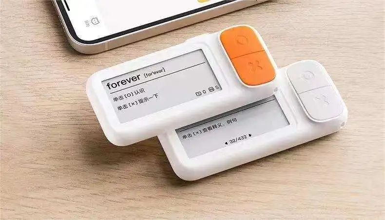 硬件方面,单词卡片机的机身外观小巧、轻盈,便于携带;采用电子墨水屏可以保护学生视力健康;只设计了3-5个功能键,满足单词记忆的基本流程;续航时间较长,充电一次可用100天左右。