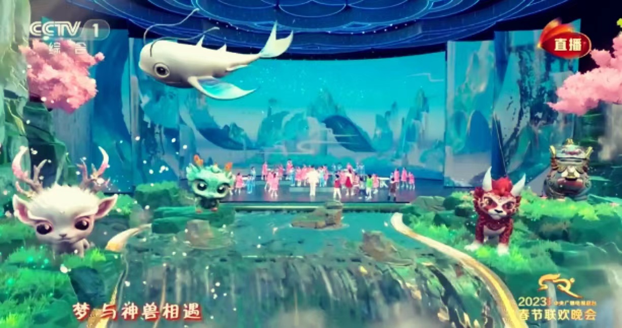 其中,央视春晚创意节目《当“神兽”遇见神兽》,融合了古籍和古建的元素,利用VR三维绘制等总台新技术,让上古神兽“走出”文献古籍,和现代生活中的孩子们相遇。