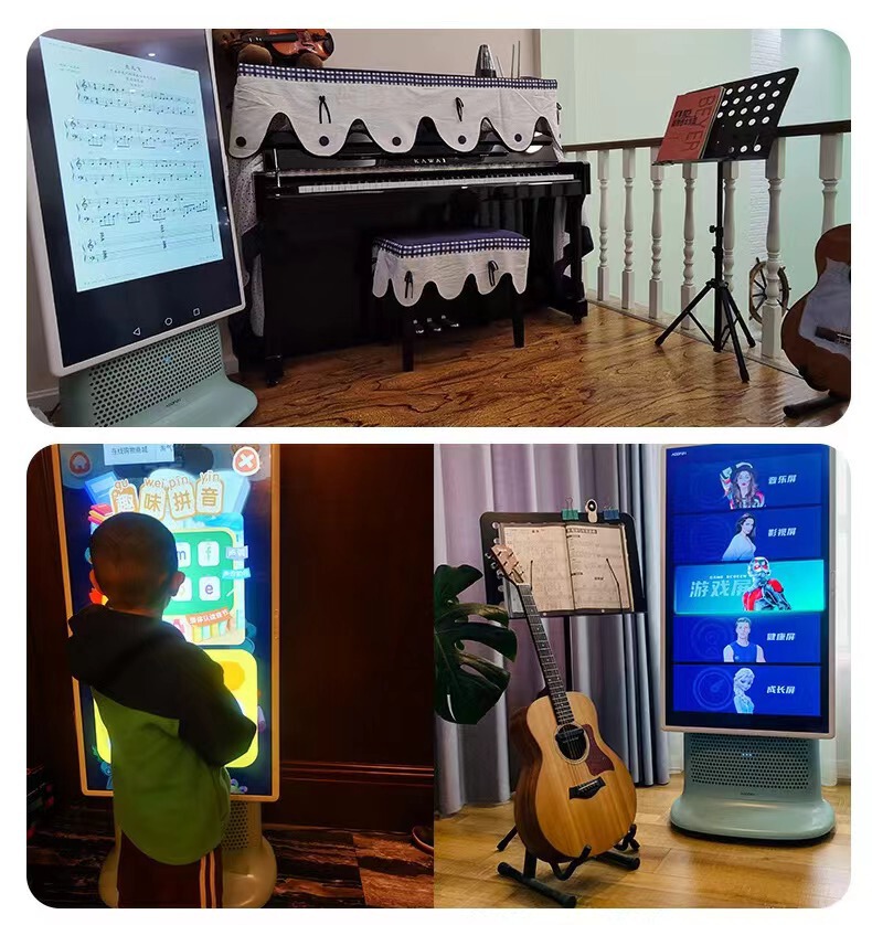 2、场景的移动与切换:大多数一体机强调自身可配备升降旋转支架、万向轮底座。这意味着其可以满足儿童房、客厅、书房等不同场景下的学习需求。
