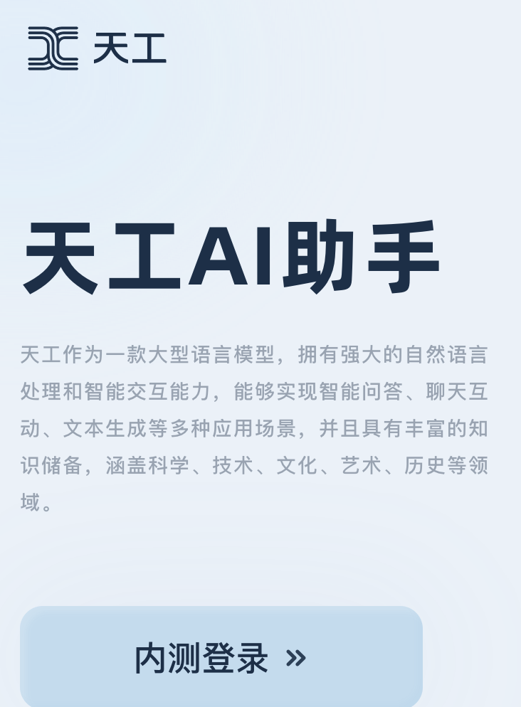 「天工」由昆仑万维与国内领先的AI团队奇点智源联合研发,这是昆仑万维继AI绘画产品「天工巧绘」后的又一款生成式AI产品。「天工」通过自然语言与用户进行问答式交互,AI生成能力可满足文案创作、知识问答、代码编程、逻辑推演、数理推算等多元化需求。