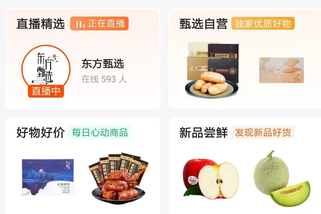 当前,在抖音矩阵和独立APP外,东方甄选还有微信小程序等多渠道平台。