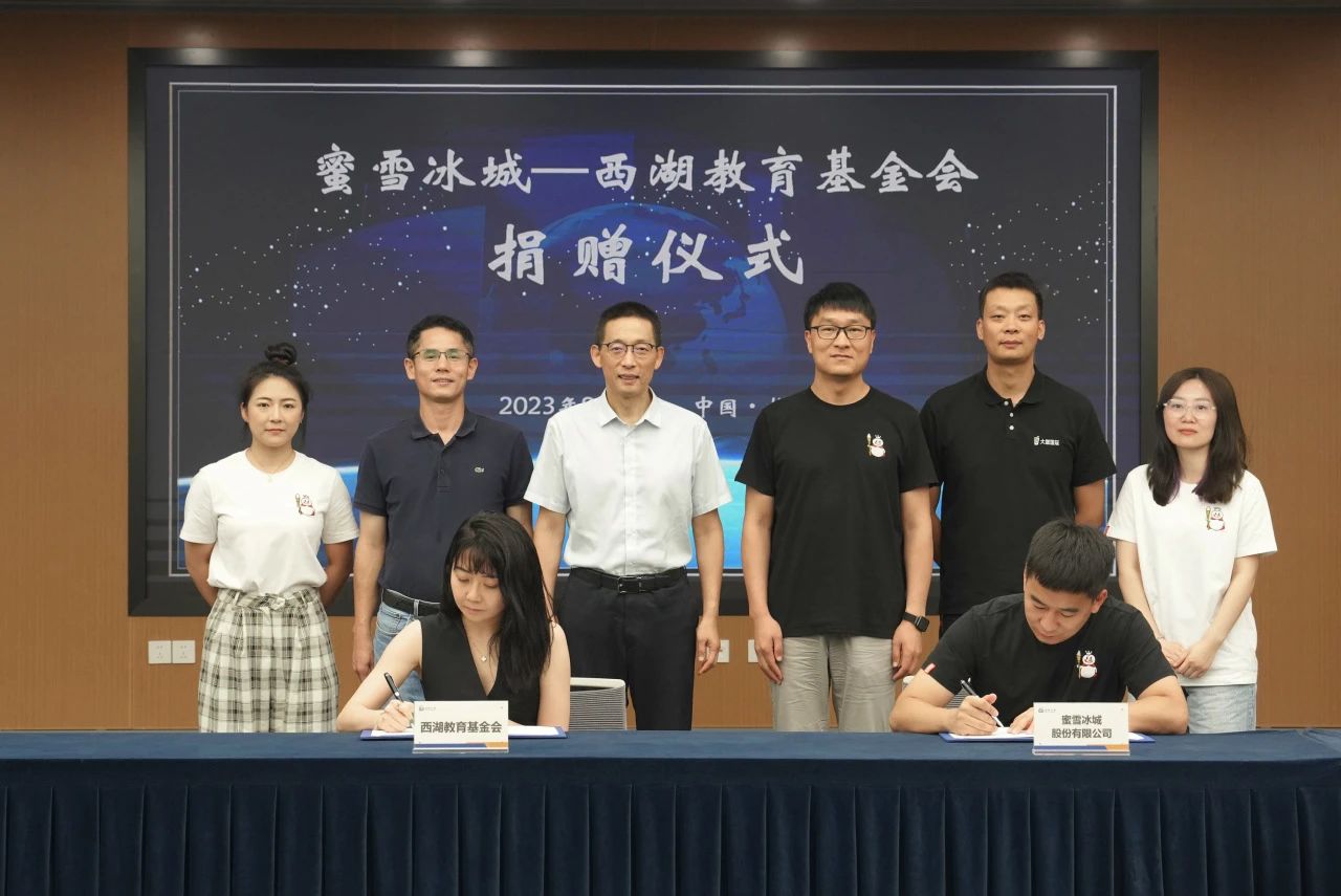 多知网8月24日消息,近日,蜜雪冰城与西湖教育基金会捐赠仪式在西湖大学的云谷校区举行。