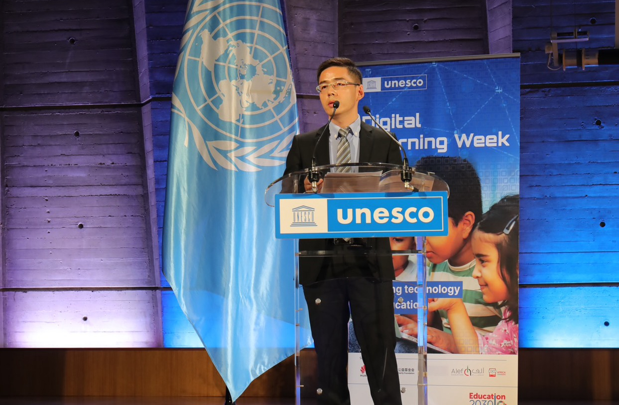 (学而思教育集团CTO田密在联合国教科文组织“数字学习周”主论坛进行主题发言)