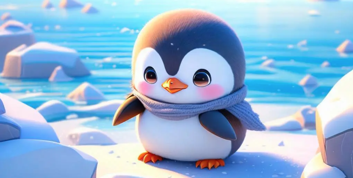 画一幅画:小企鹅在树下行走,突然一个苹果从树上掉下