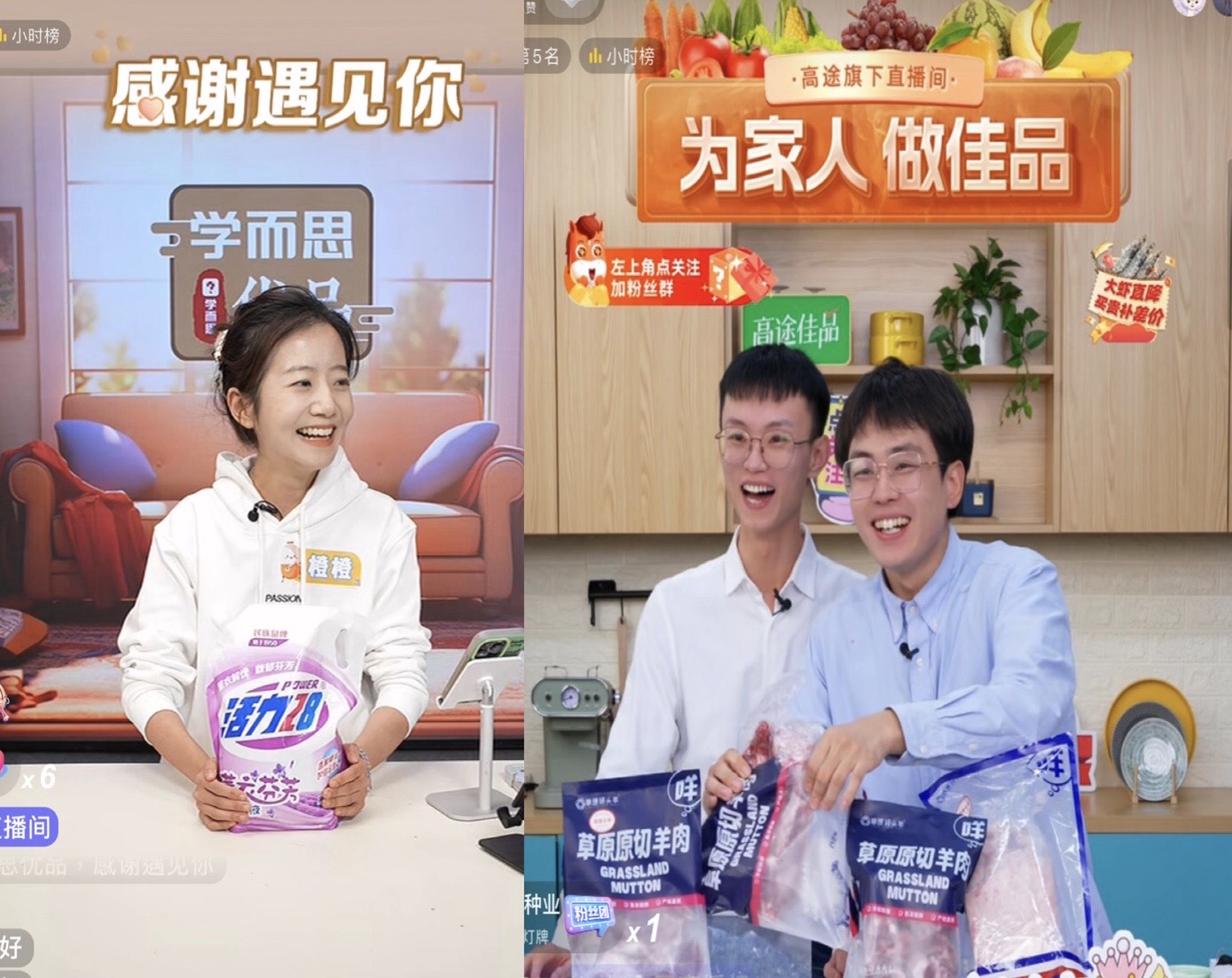 两个直播间依靠不同气质脱颖而出,逐渐摆脱了“脚踝部直播间”的身份。同时,它们也都有了出圈的人气主播。