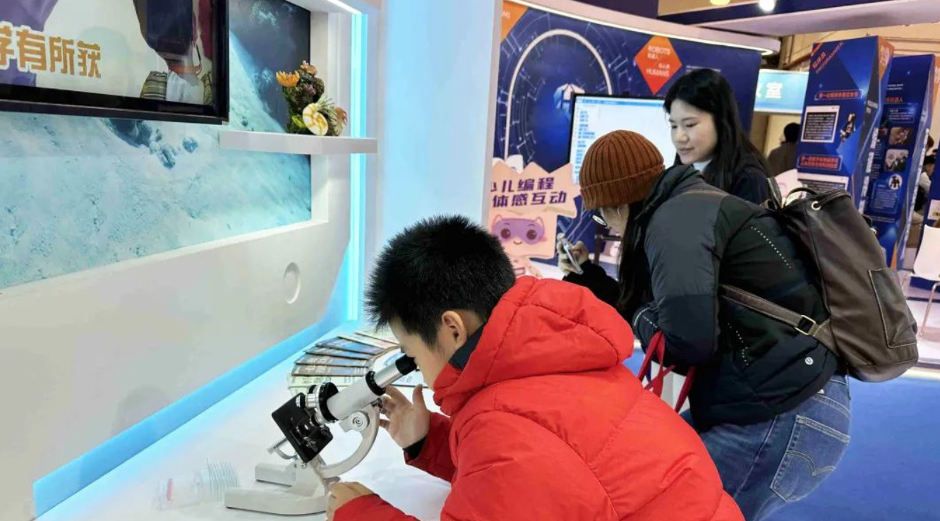 学而思素养走进上海自然博物馆、震旦博物馆、中华艺术宫等上海本地场馆,研发了一系列主题研学课程。此次展会,学而思素养带来了观看微生物的高倍数显微镜,还有模拟潜水艇上下浮沉的科学小实验。