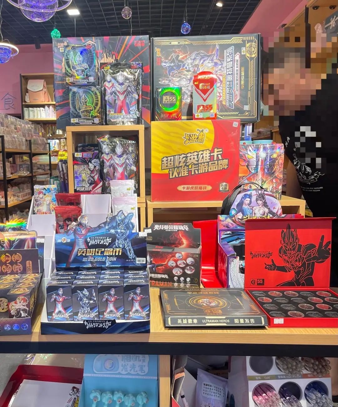近年来,卡牌尤其是奥特曼卡牌正成为低龄学生的社交顶流。在中小学附近的小卖部可以看到,不同种类的奥特曼卡片基本都被摆在了最明显的位置,“吸金”能力,可见一斑。