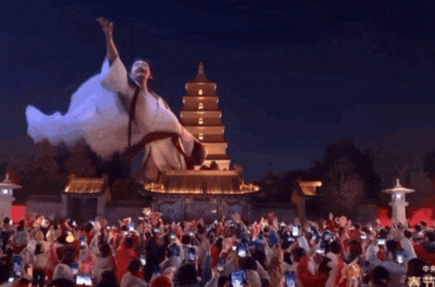 “将进酒,杯莫停,与君歌一曲,请君为我倾耳听”——在西安的迎宾门——永宁门,千人齐诵《将进酒》,也是被网友们直呼好燃的演出之一