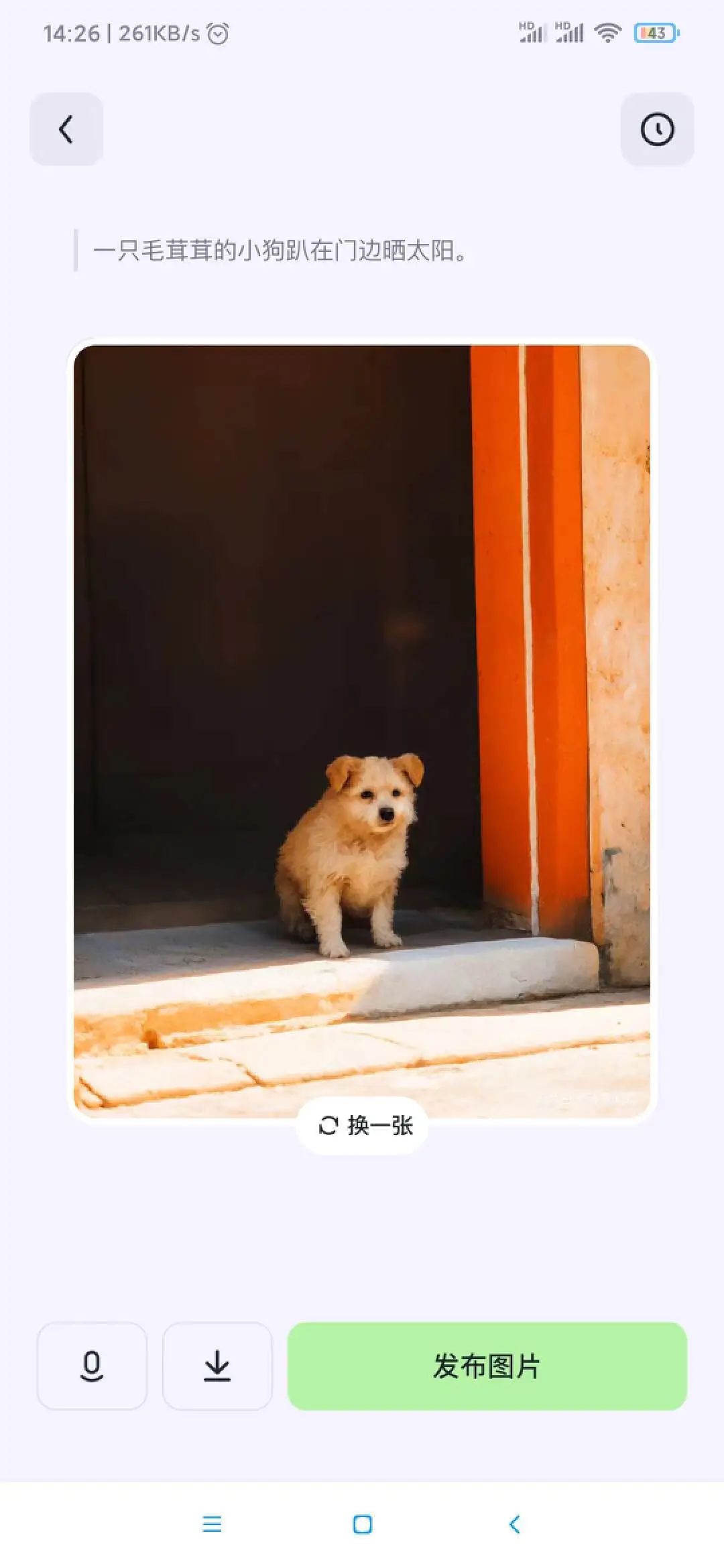 笔者体验了语音生图功能。当笔者给出“一只毛茸茸的小狗趴在门边晒太阳”的提示时,几秒后,AI创作的图片如下图所示,基本符合指令要求。