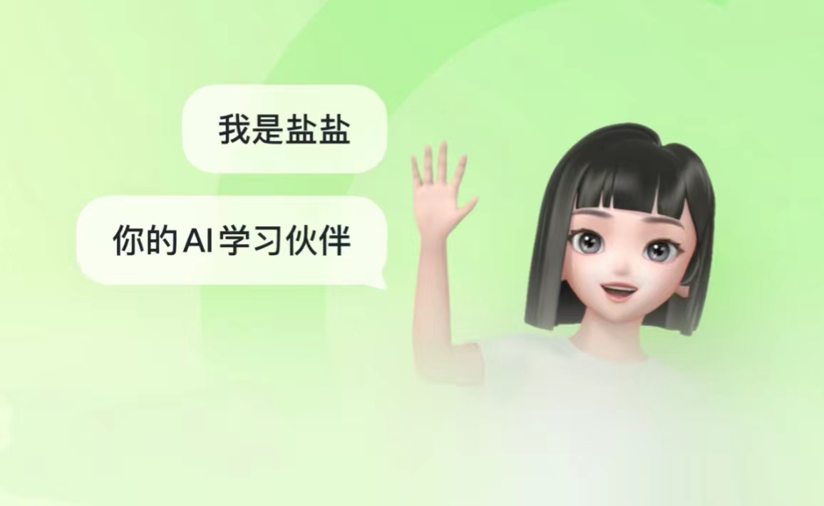 在“问答”页面,一个名为“盐盐”的AI虚拟人充当了伴学助手的角色,页面支持语音和文字对话。