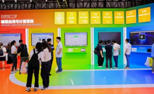 多知 4 月 23日消息,近日,在第 83 届中国教育装备展示会上,猿编程首次展出旗下全系产品与服务,包括《编程应用与计算思维》系列课程(以下简称“C系列”)、《高级算法与人工智能》系列课程(以下简称“A+系列”)、AR编程、实物化编程、智能硬件编程等。