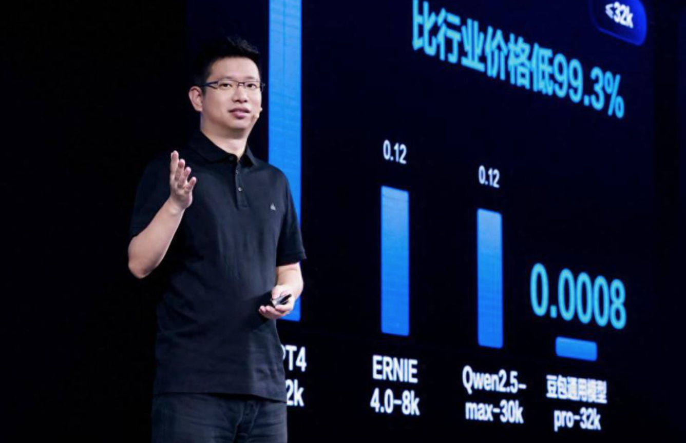 在定价方面,字节是第一家降价的大厂,谭待在发布会上宣布,豆包通用模型pro-32k版模型推理输入价格仅为0.0008元/千Tokens,比行业低99.3%。