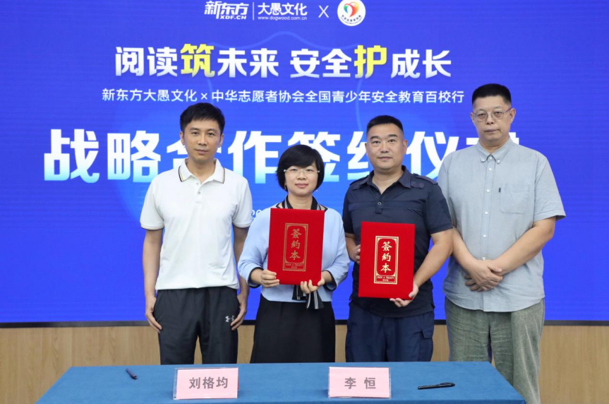 发布会上,新东方大愚文化与中华志愿者协会全国青少年安全教育百校行达成战略合作,双方依托图书出版,持续深化在青少年安全教育领域的协同联动,致力于青少年安全知识与防护技能的推广。