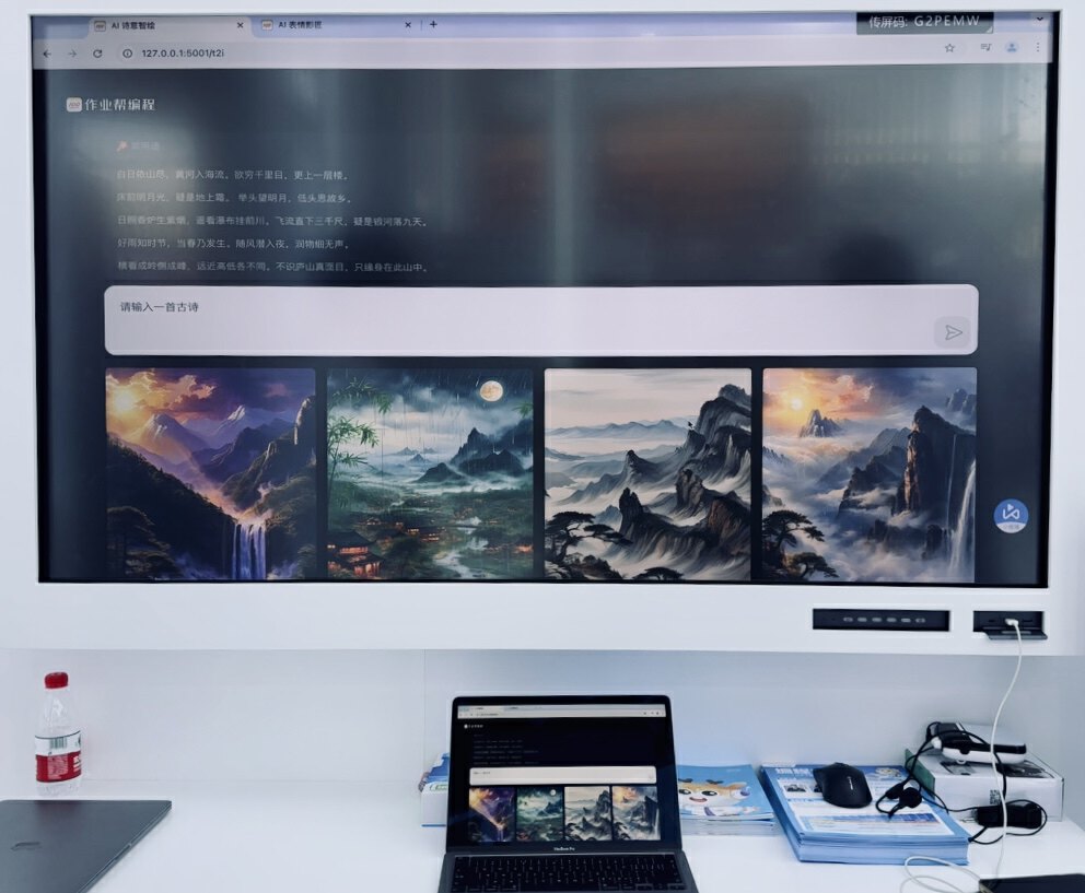 例如:通过大模型文生图的学习,给熟悉的古诗配上精美画面;为自己制作AI动态头像和趣味画册;遇到代码难题时,AI辅导老师及时提示思路;还能体验AI智能模拟赛考,系统会结合孩子的编程水平提供举一反三的针对性练习,并针对代码中的易错点进行提示……