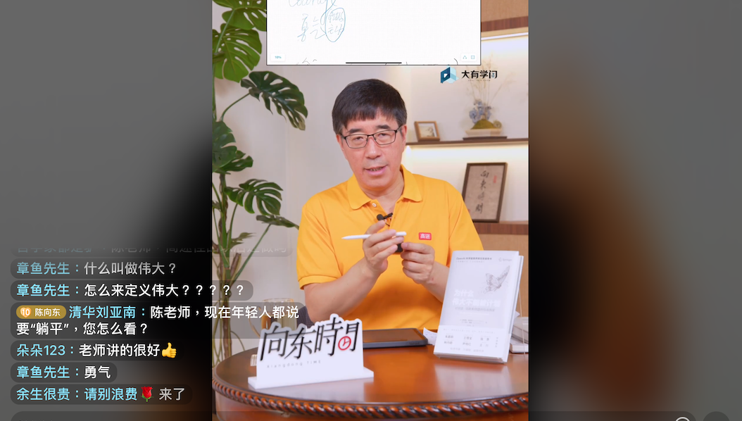 一个有意思的细节是,陈向东9月21日这天的第一场直播持续一个半小时,核心是介绍《为什么伟大不能被计划》这本书并拆解论证“伟大不能被计划”这一观点。