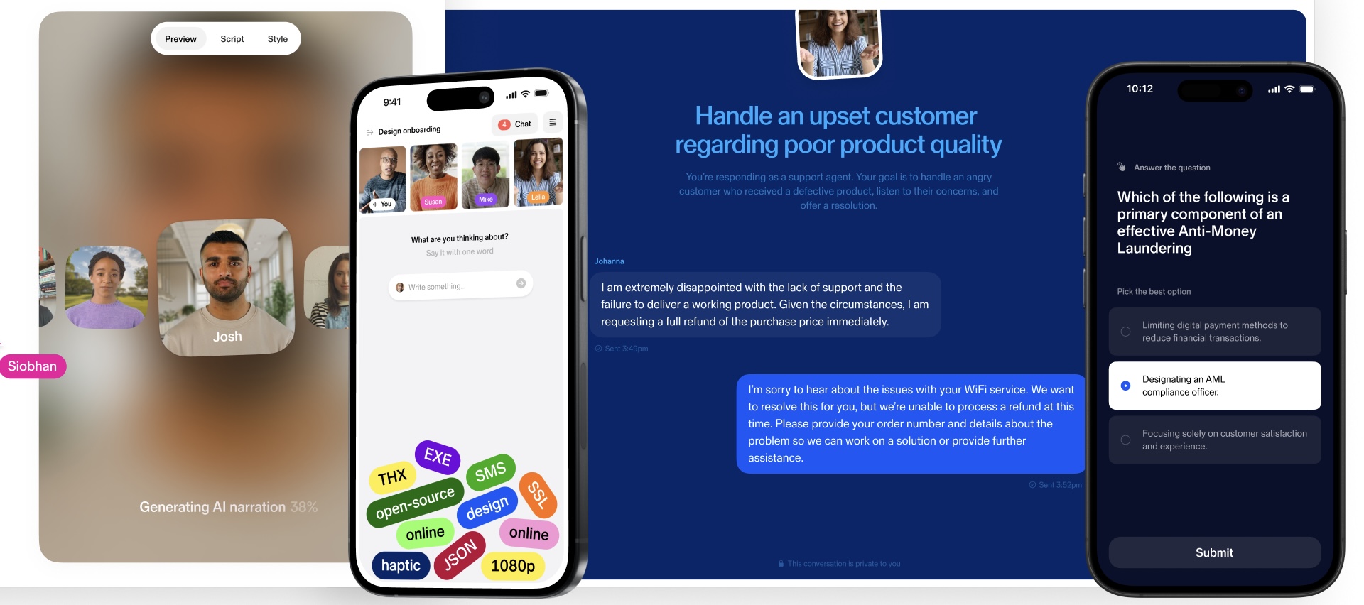 例如,在学习管理方面,Sana Labs通过自动化简化学习管理流程。用户可以实时创建、审阅文件,进行团队协作,将静态文件转化为交互式课程。还可以将课程切成小规模的测试,进行实时互动课程,或者让学习者与自己的人工智能导师一起练习。