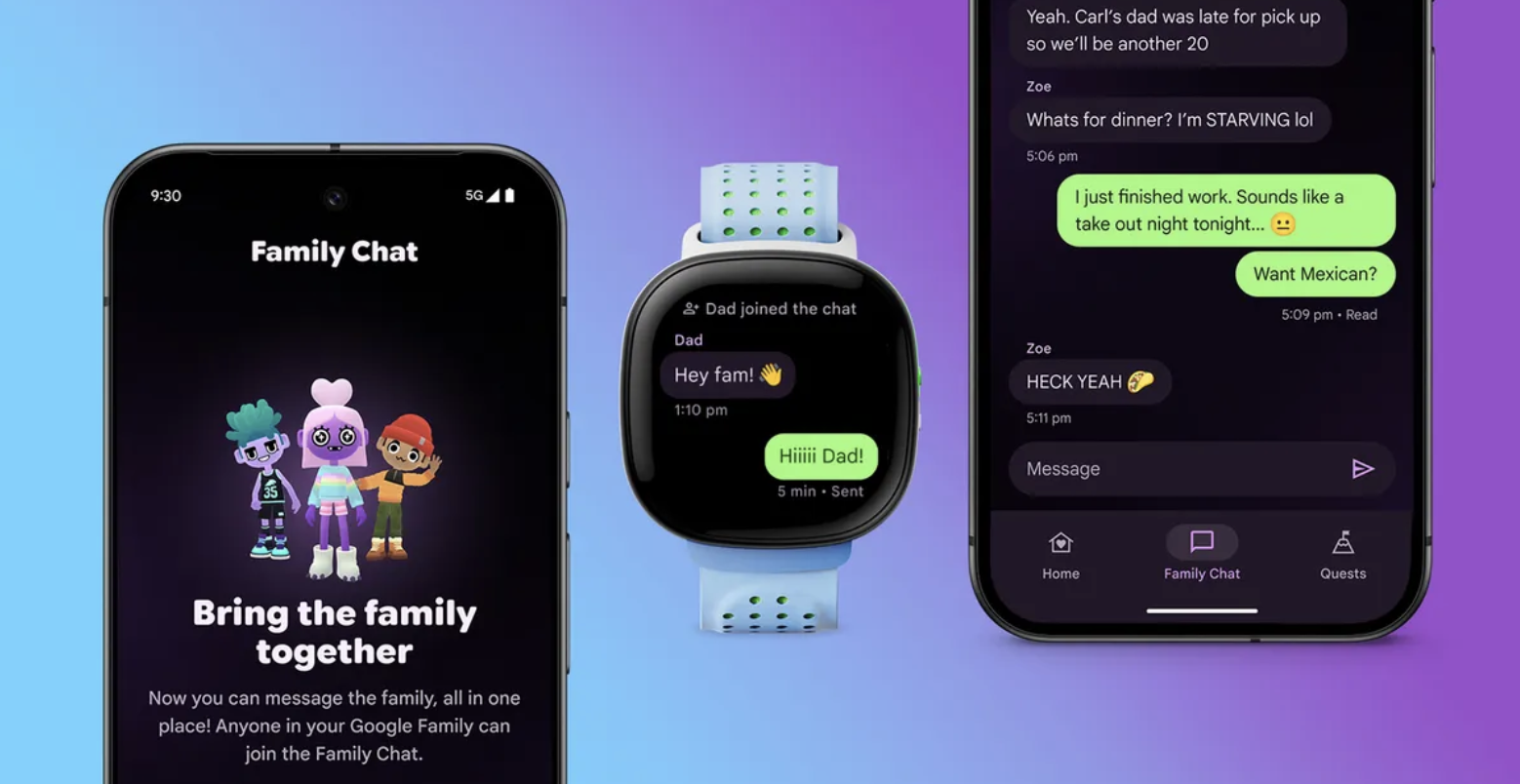 Fitbit 儿童手表添加家庭聊天和兄弟姐妹聊天功能。家庭聊天是全家人的群聊,兄弟姐妹现在可以互相发送消息或打电话。以前,这些功能并不能实现。
