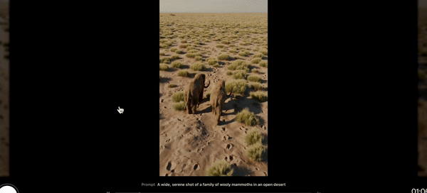 Sora是可根据文本创建逼真视频的模型,Open AI网站展示了一个示例,对Sora输入文字“在开阔的沙漠中拍摄一群猛犸象的广阔宁静镜头”,随后生成的视频展示了三只猛犸象缓慢穿过沙丘。