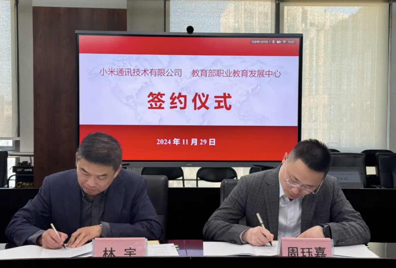 多知12月10日消息,根据小米技术官方披露,近日,小米通讯技术有限公司与教育部职业教育发展中心在北京签署战略合作备忘录,共同推进新一代智能技术领域产教深度融合。职教中心主任林宇和小米集团产业标准部总经理、技术委员会办公室主任周珏嘉出席签约仪式并讲话。