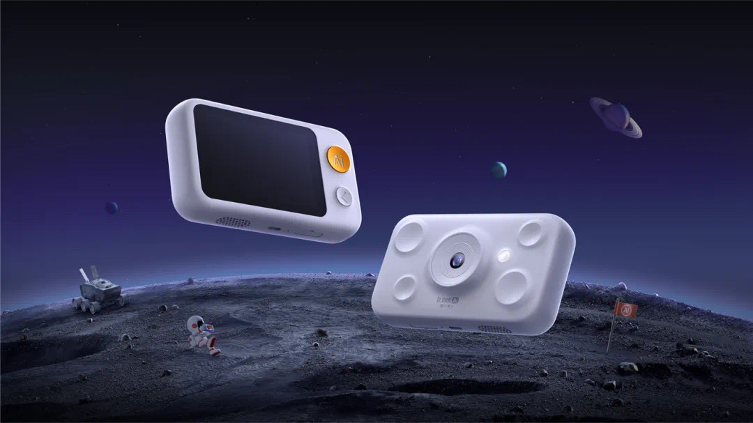 AI拍学机外观形态类似儿童版照相机,配有3.4 英寸IPS 护眼触摸屏,产品重量170克,搭载2000毫安电池。