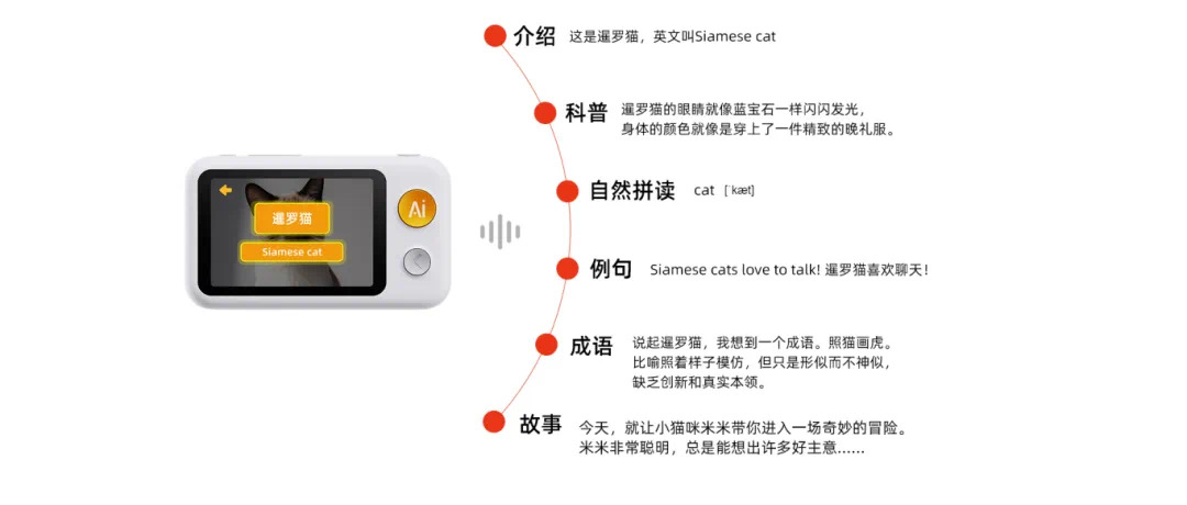 也就是说,拍学机可以将日常生活里孩子们拍摄的物品转化为学习资源并讲解。例如,小朋友拍摄一朵花,AI拍学机就能根据拍摄内容生成相关的知识科普和趣味故事,从而解答孩子们的“十万个为什么”。