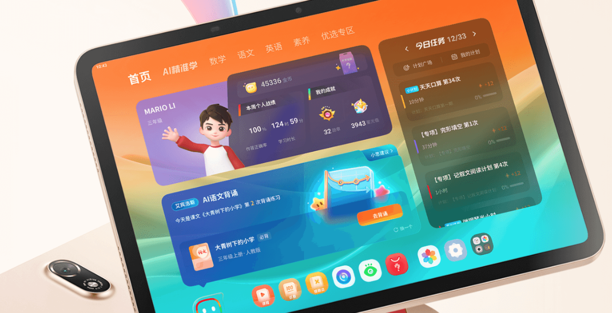 学而思智能硬件的成功得益于其在内容资源和AI能力上的优势。在内容资源方面,学而思学习机内置了丰富的自研内容,并与5·3、万唯等多家知名教辅品牌合作。在AI能力方面,学而思学习机通过自研的九章大模型,有个性化学习推荐和智能辅导功能。