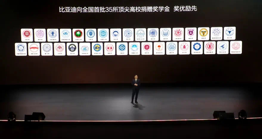 比亚迪董事长王传福介绍,这30亿元慈善基金中的一部分将分批捐赠给全国多所高校设立奖学金。发布会上,已正式启动首批35所高校奖学金合作;