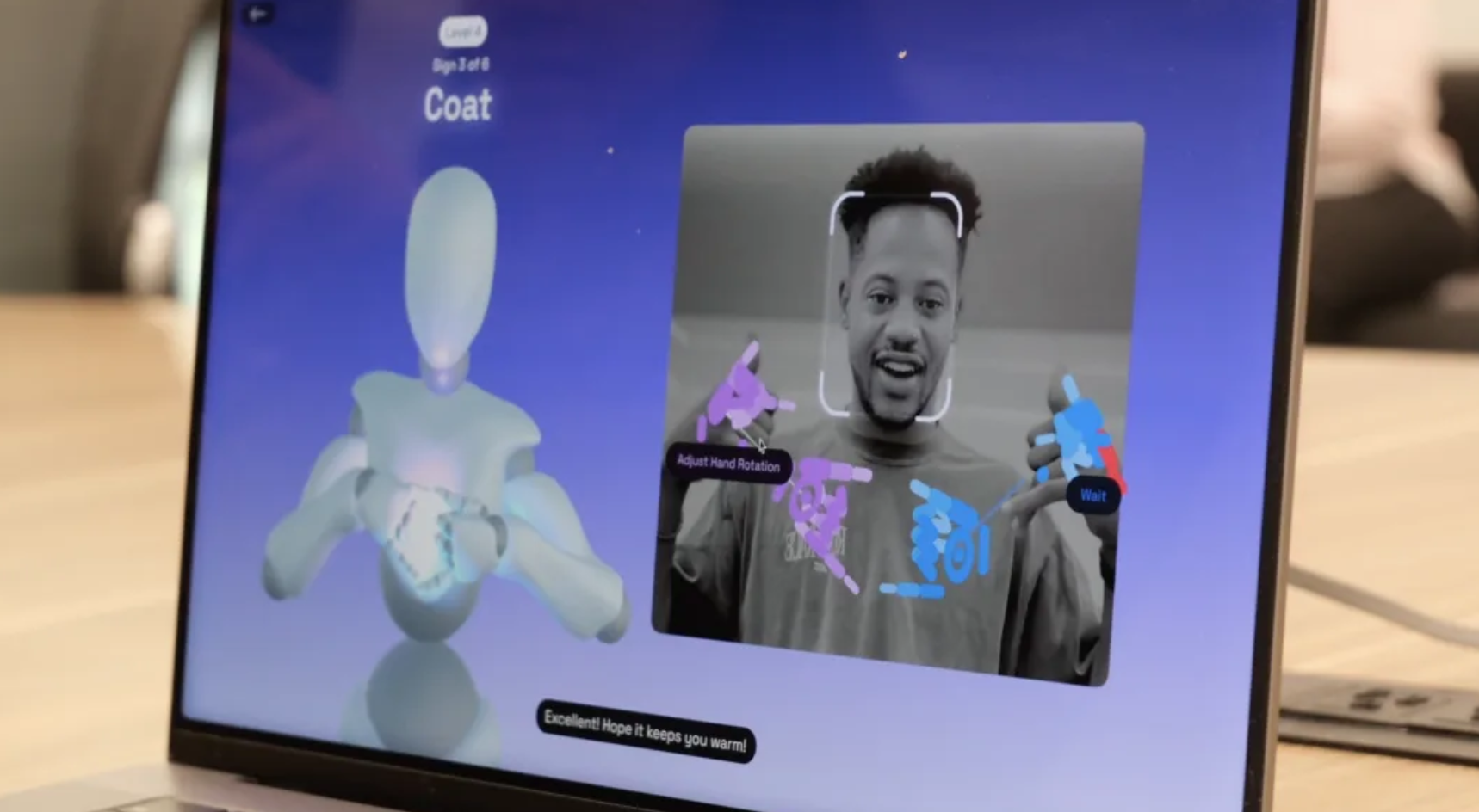 Signs采用 3D 虚拟形象来演示手势,用户在与平台交互时,摄像头保持打开状态,AI 工具会在用户练习手势时提供反馈。Signs平台发布时提供 100 种不同的手势,但 Nvidia 希望将其增加到 1000 种。