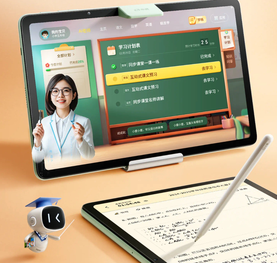 根据官方推文,此次学练机中的AI老师将为青少年提供1对1板书互动讲解、定制学习计划、互动体验式预习和互动课堂等服务。